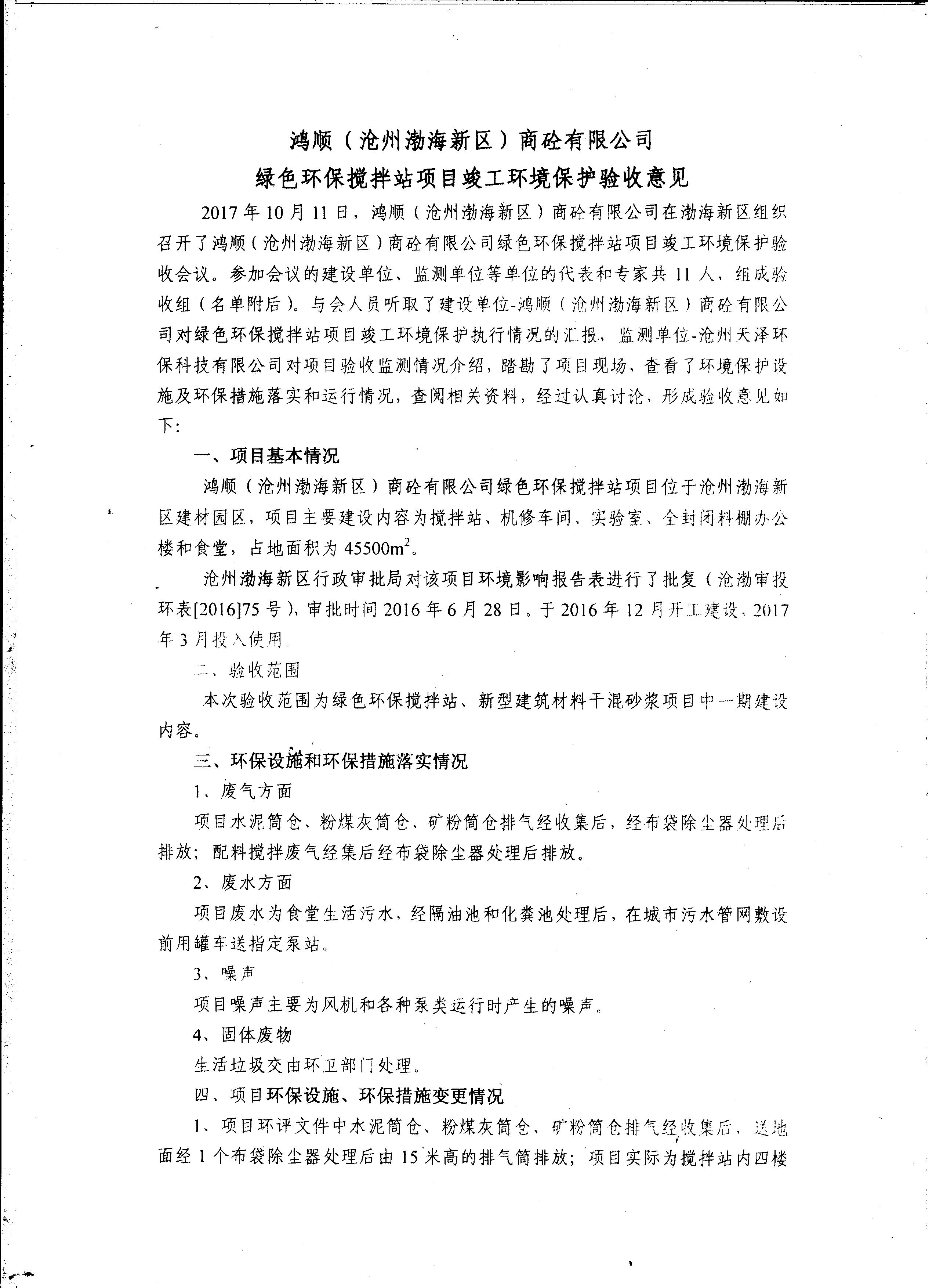 關(guān)于鴻順商砼綠色環(huán)保攪拌站環(huán)境保護驗收公示